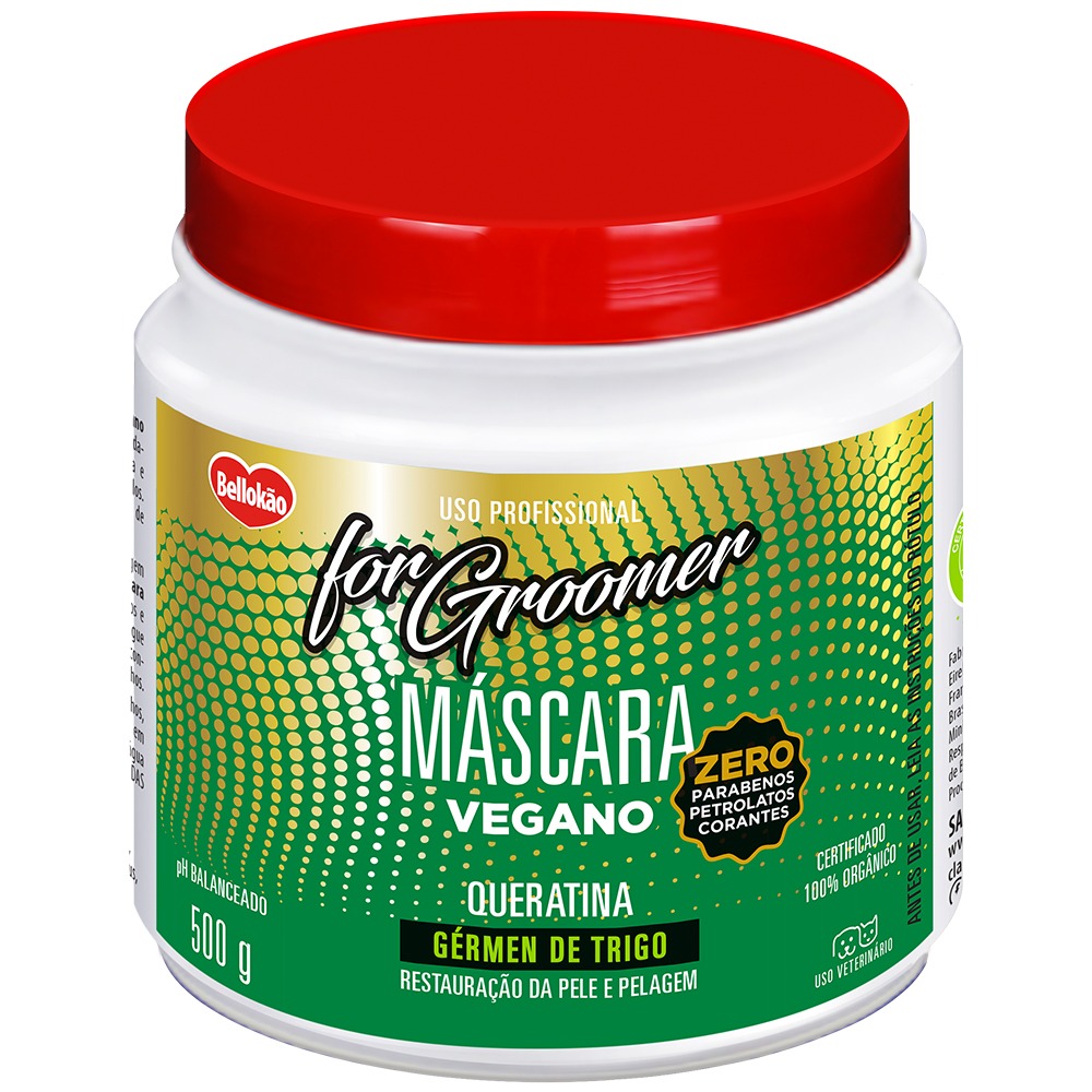 A Máscara Bellokão For Groomer Vegano foi formulada para uso profissional. Hidrata profundamente a pelagem de cães e gatos. Com queratina e silicone, fortalece, dá brilho e maciez aos pelos.
